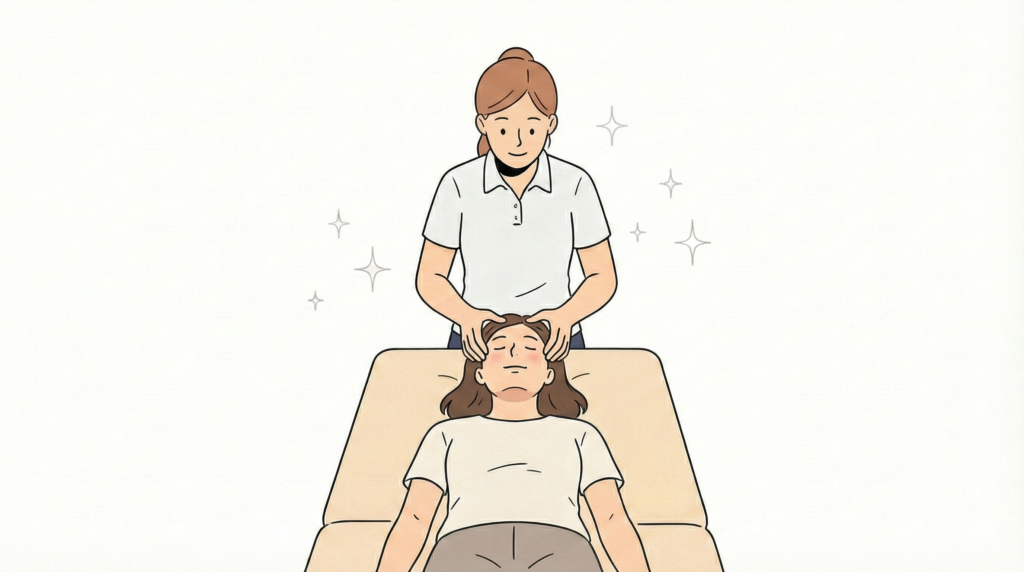 実際に施術を行い、心身の不調や疲労の状態を確認。